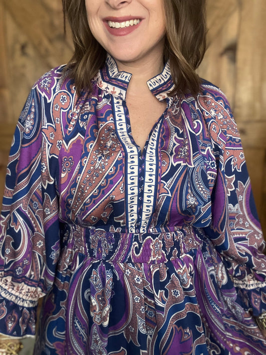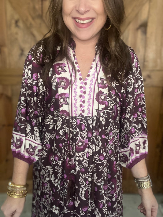 Fall Boho Dress - Purple