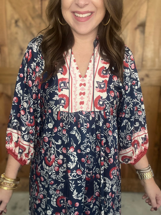 Fall Boho Dress - Navy