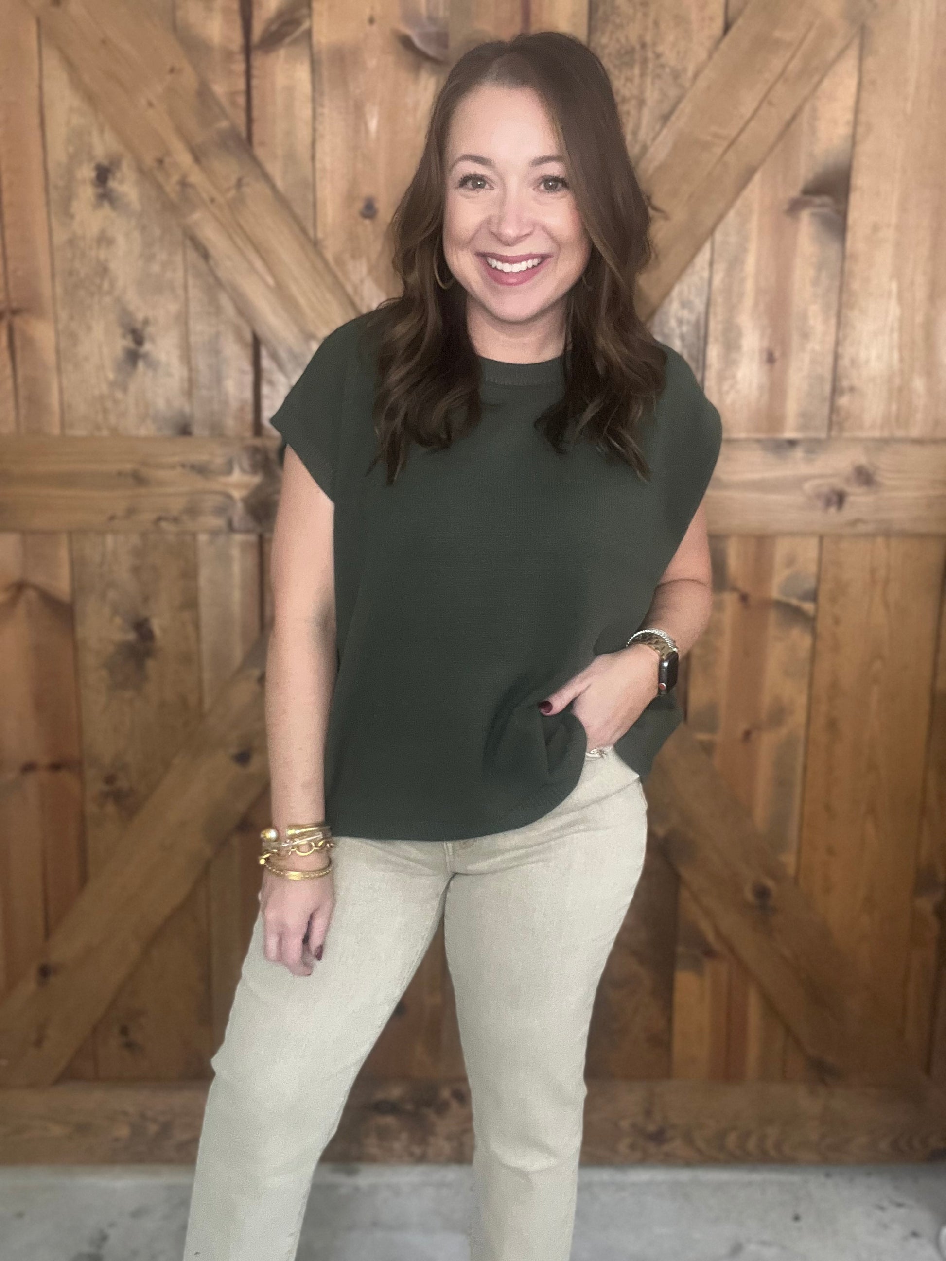 Get cozy in the Any Day Now Top - Dark Olive, an oversized viscose sweater vest that's perfect for layering with a playful twist. Its relaxed fit and soft fabric keep you comfy all day while adding a splash of effortless style to any outfit. Whether paired with your favorite jeans or layered over a long sleeve tee, this vest makes every day feel like a laid-back adventure.