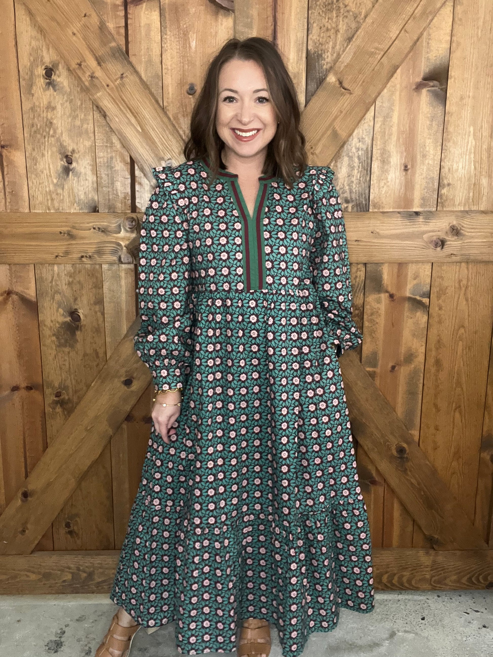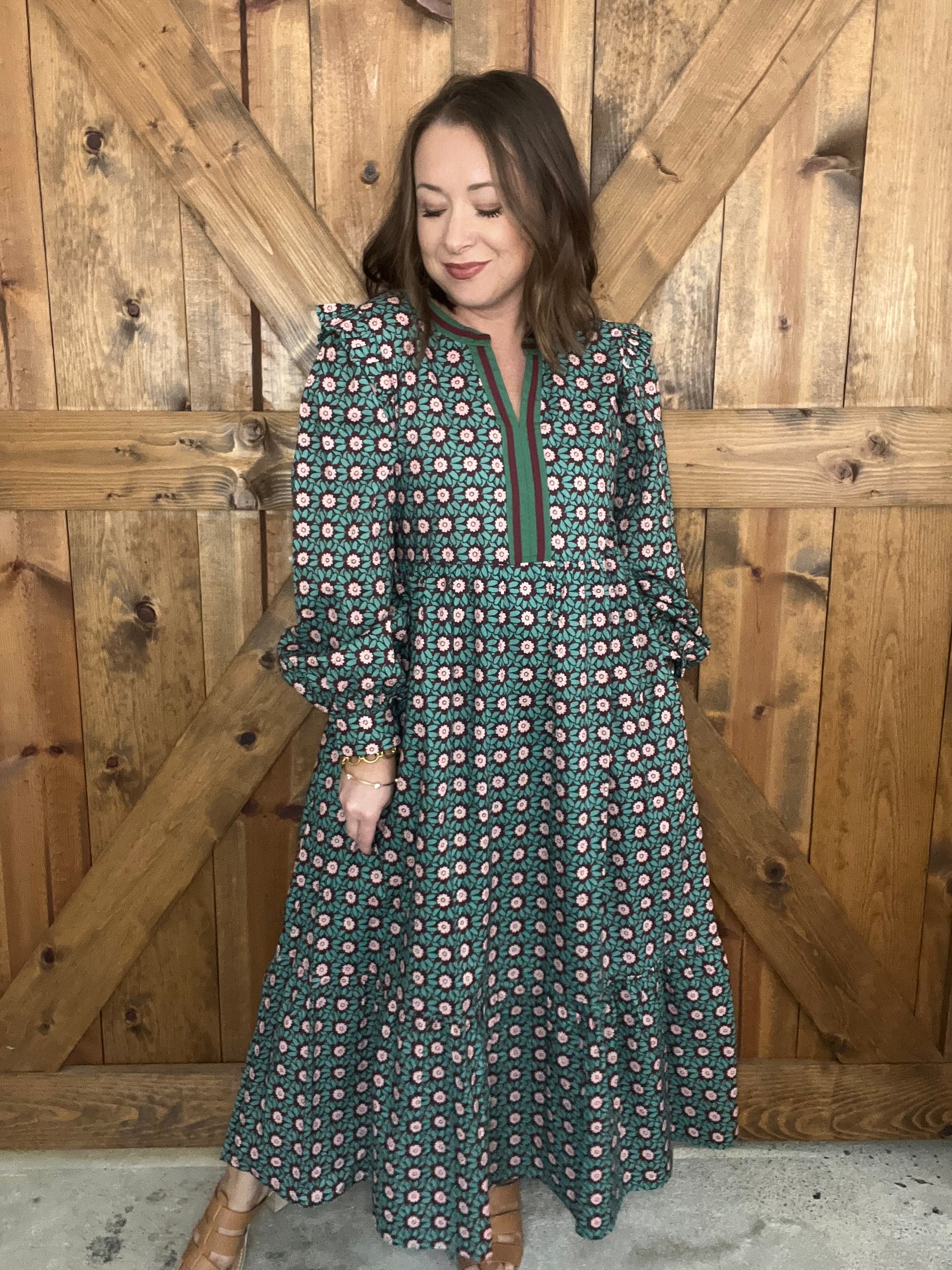 Embrace timeless charm with the Better With Time Dress—a playful floral midi featuring long sleeves and whimsical shoulder ruffles. Delight in the practical side pockets that keep essentials close while adding to the dress’s effortless style. Perfect for days when you want to feel both comfortable and effortlessly chic. Lined.
