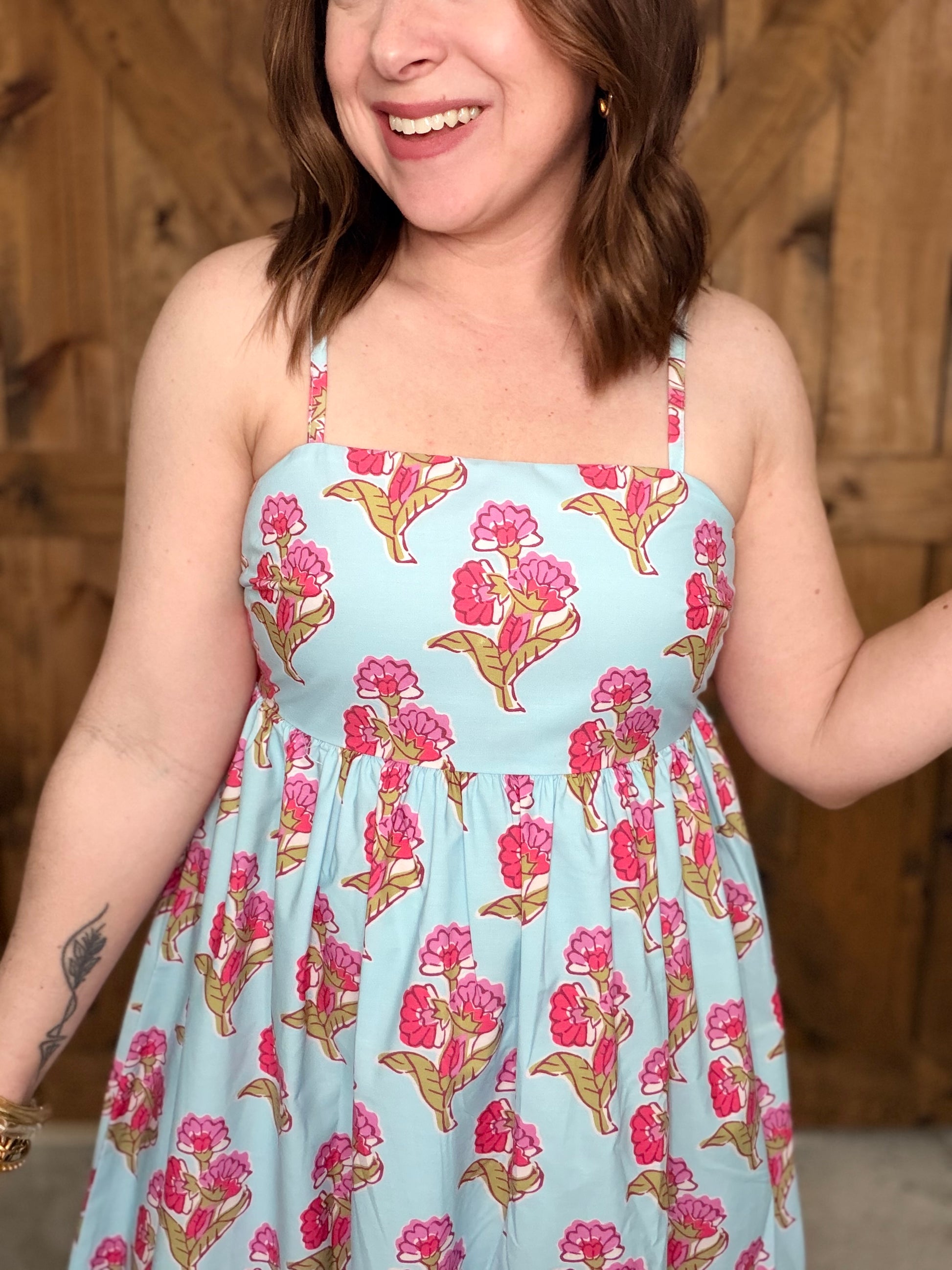 Twirl through your day in this enchanting Blossoms Maxi Dress, where romantic florals meet effortless elegance. The airy, flowing fabric drapes beautifully from delicate spaghetti straps, while a gathered waist seam cinches just right for a flattering silhouette. A bold contrast border hem adds that perfect pop of personality, and the hidden back zipper keeps things sleek and polished. Whether you're heading to brunch or a garden party, this dress is your go-to for looking absolutely stunning without trying too hard.