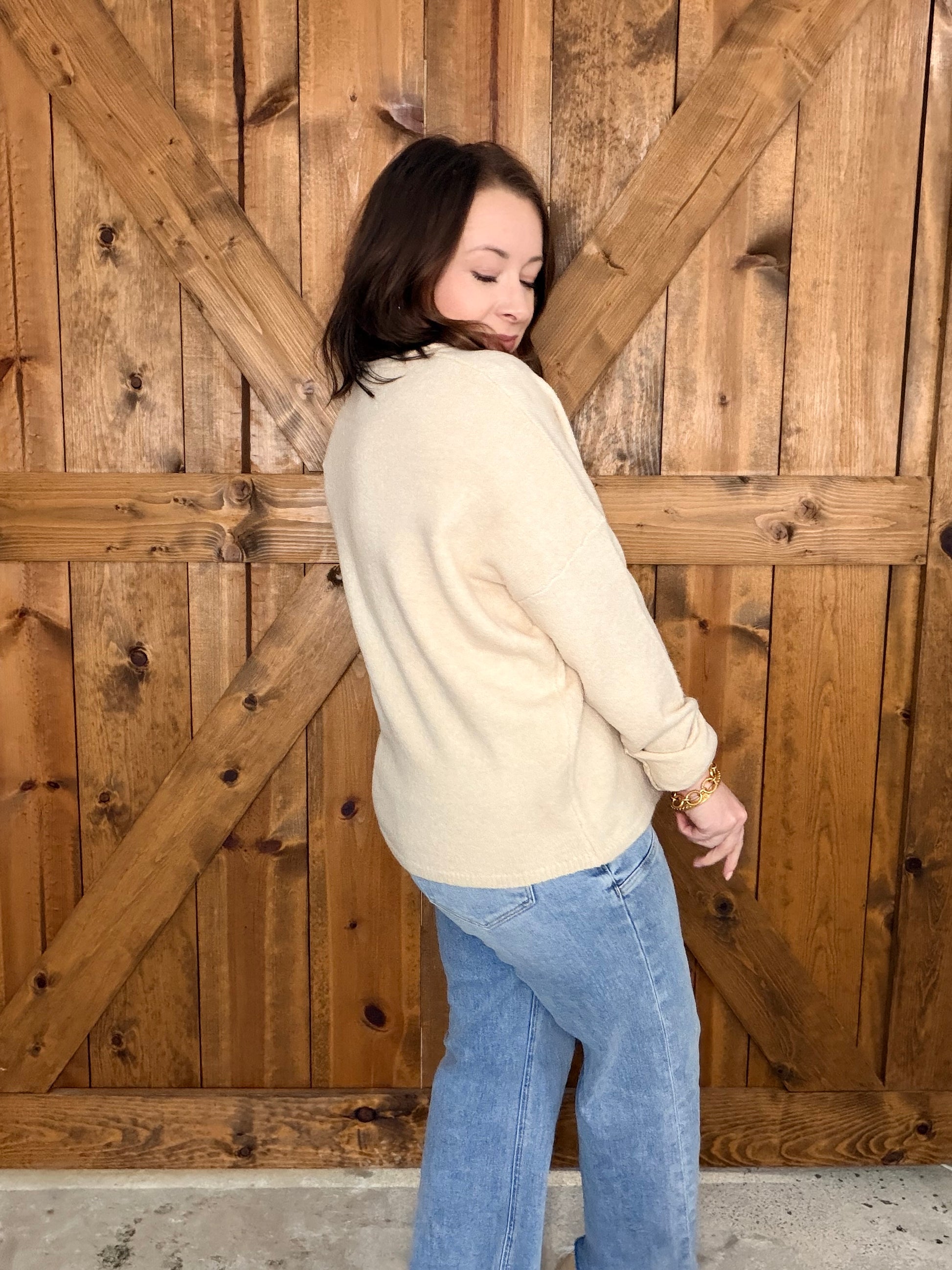 Wrap yourself in pure comfort with this oversized cardigan that's basically a hug you can wear. Featuring a classic crew neck, button-down front, and relaxed silhouette, it's perfect for layering or going solo. The ultra-soft fabric feels amazing against your skin, making it impossible to take off once you put it on. In a warm oatmeal tone, this piece is your new go-to for cozy days and effortless style.