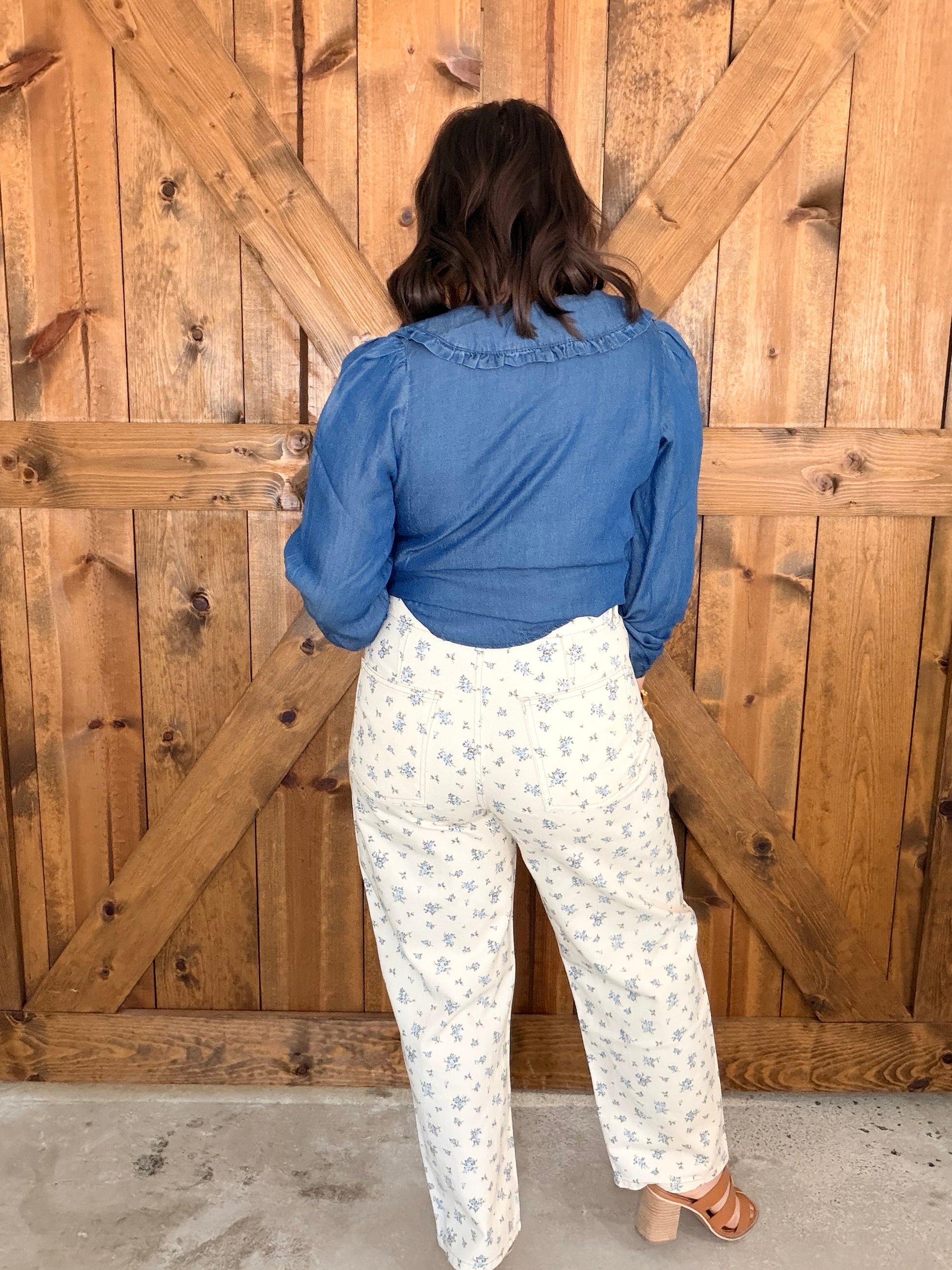 Meet your new denim obsession! These floral-inspired jeans feature a flattering high-waist cut that hugs in all the right places. With a classic straight-leg silhouette, button and zipper closure, and functional belt loops and pockets, they're as practical as they are stylish. Crafted from 100% cotton for breathable comfort and that perfect worn-in feel. Unlined for lightweight wear that moves with you. Whether you're dressing them up or keeping it casual, these jeans are ready for anything your day throws your way.