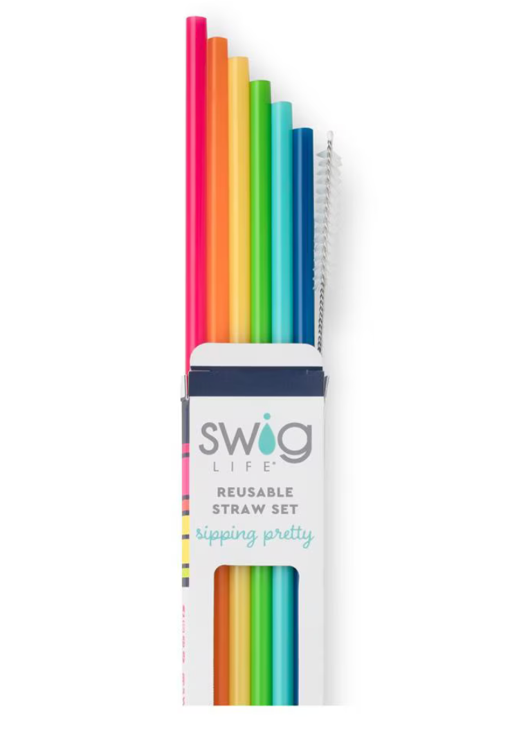 Eliminate the need of those single-use straws and sip with our reusable straw sets. Go eco-friendly and add printed straw sets to your Swig order for the ultimate sustainable routine!