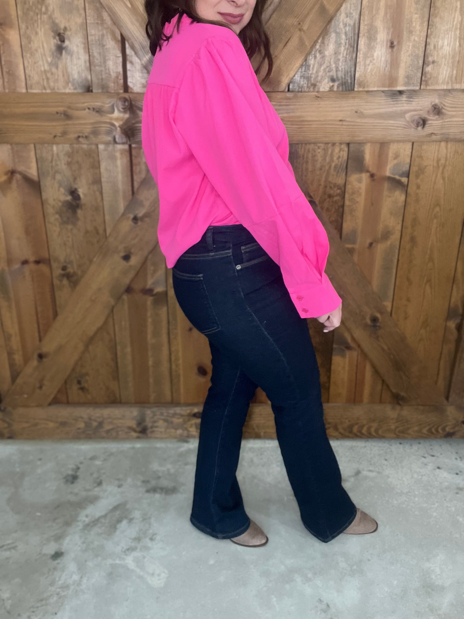 These sleek slim bootcut jeans are cut for a clean, polished look that works from desk to dinner. With a 9.5" rise that sits just right and a 30" inseam, they're designed for an effortless fit. The 6.5" opening gives you that classic bootcut silhouette that pairs perfectly with everything from sneakers to heels. In super dark wash, they're versatile enough to dress up or down—basically your new go-to pair that makes getting dressed way more fun.