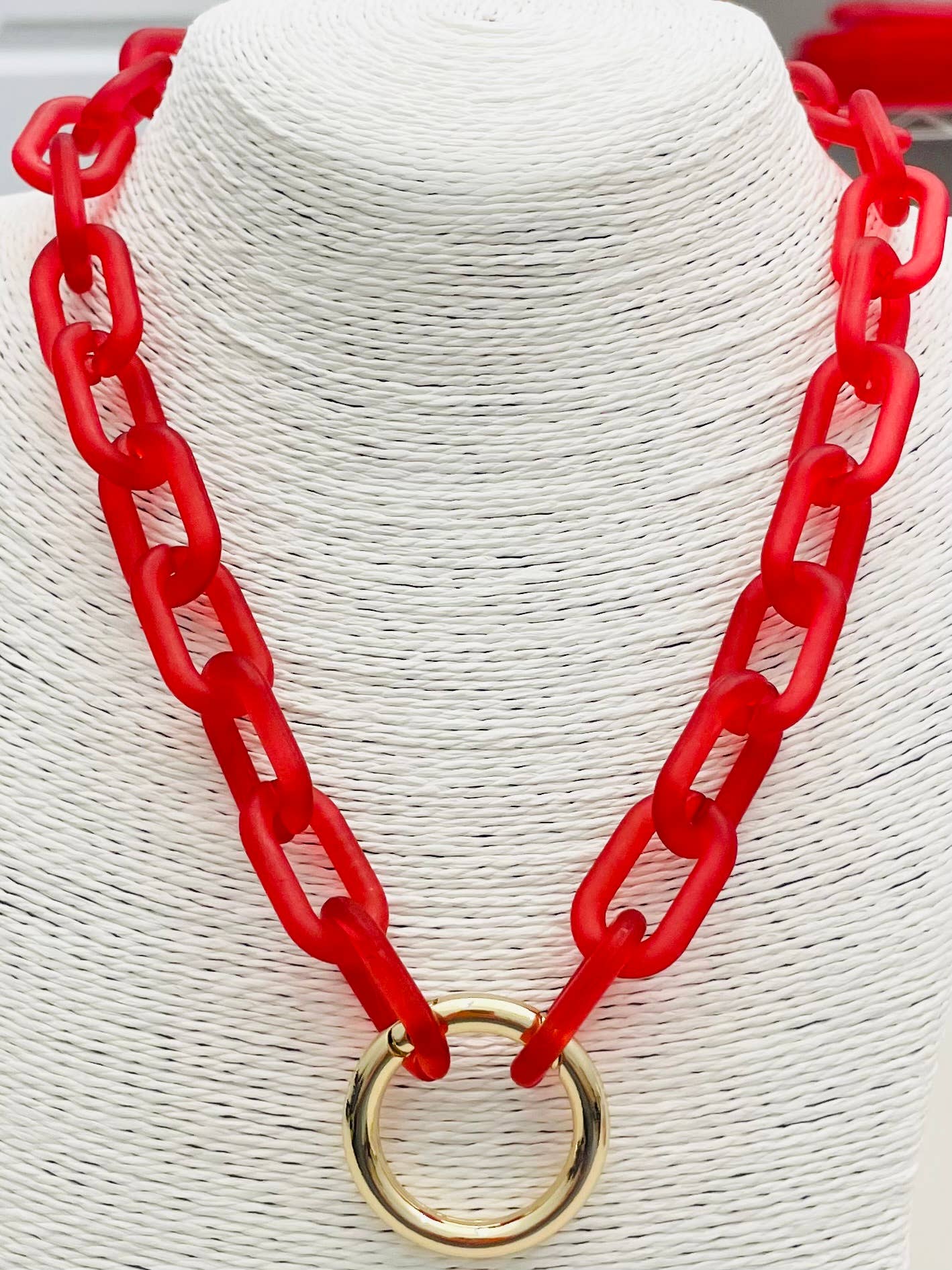 A bold summer statement. Molded Polymer Link. 19-inch w/gold 1-inch carabiner. Add a trinket or hang your sunglasses.