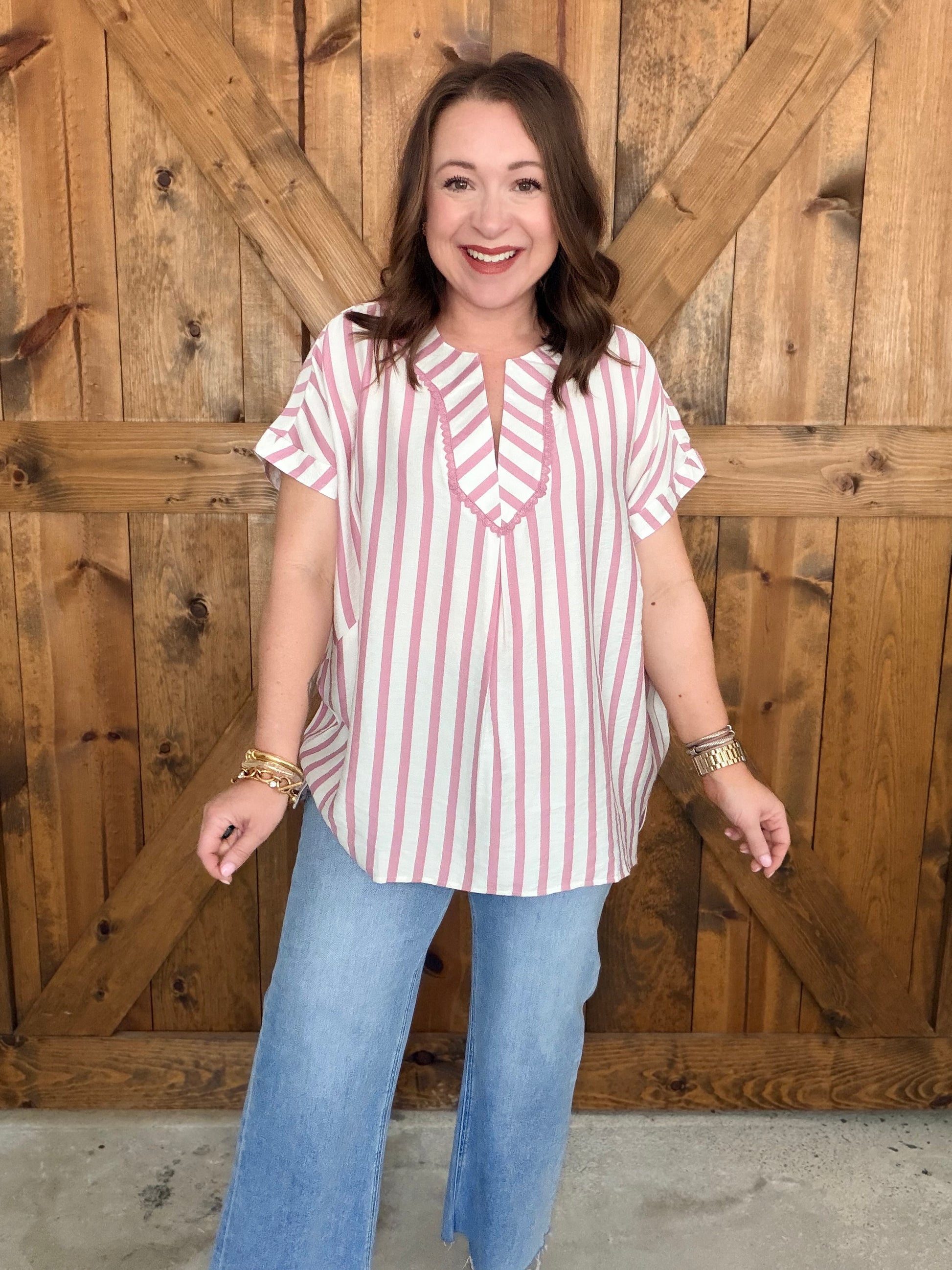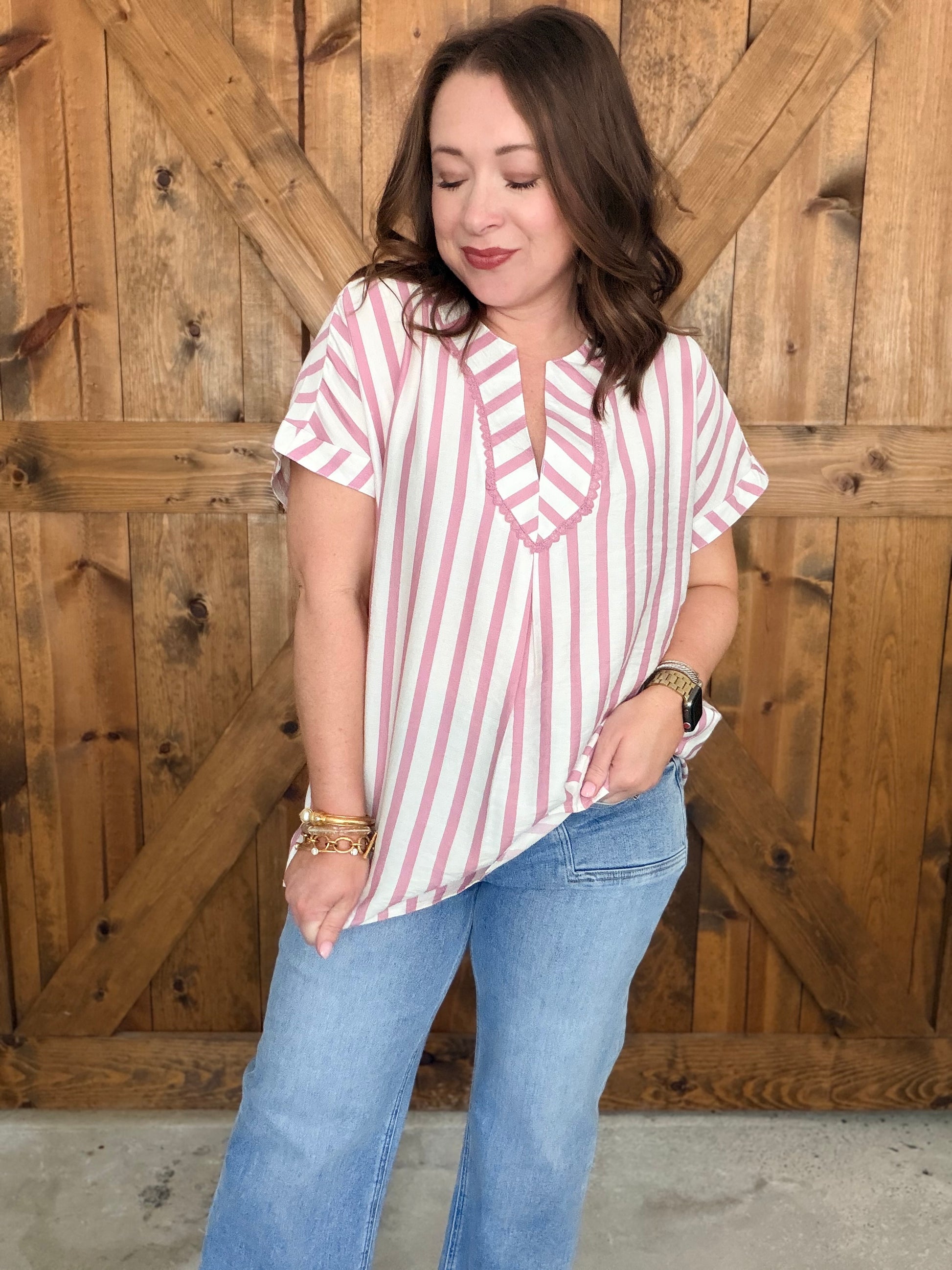 Sweet, simple, and so easy to wear! The Sweet Charm Top features a classic striped pattern with a feminine touch thanks to the delicate lace trim neckline. Designed with an oversized fit and breezy dolman sleeves, this top is perfect for those effortless, everyday outfits.